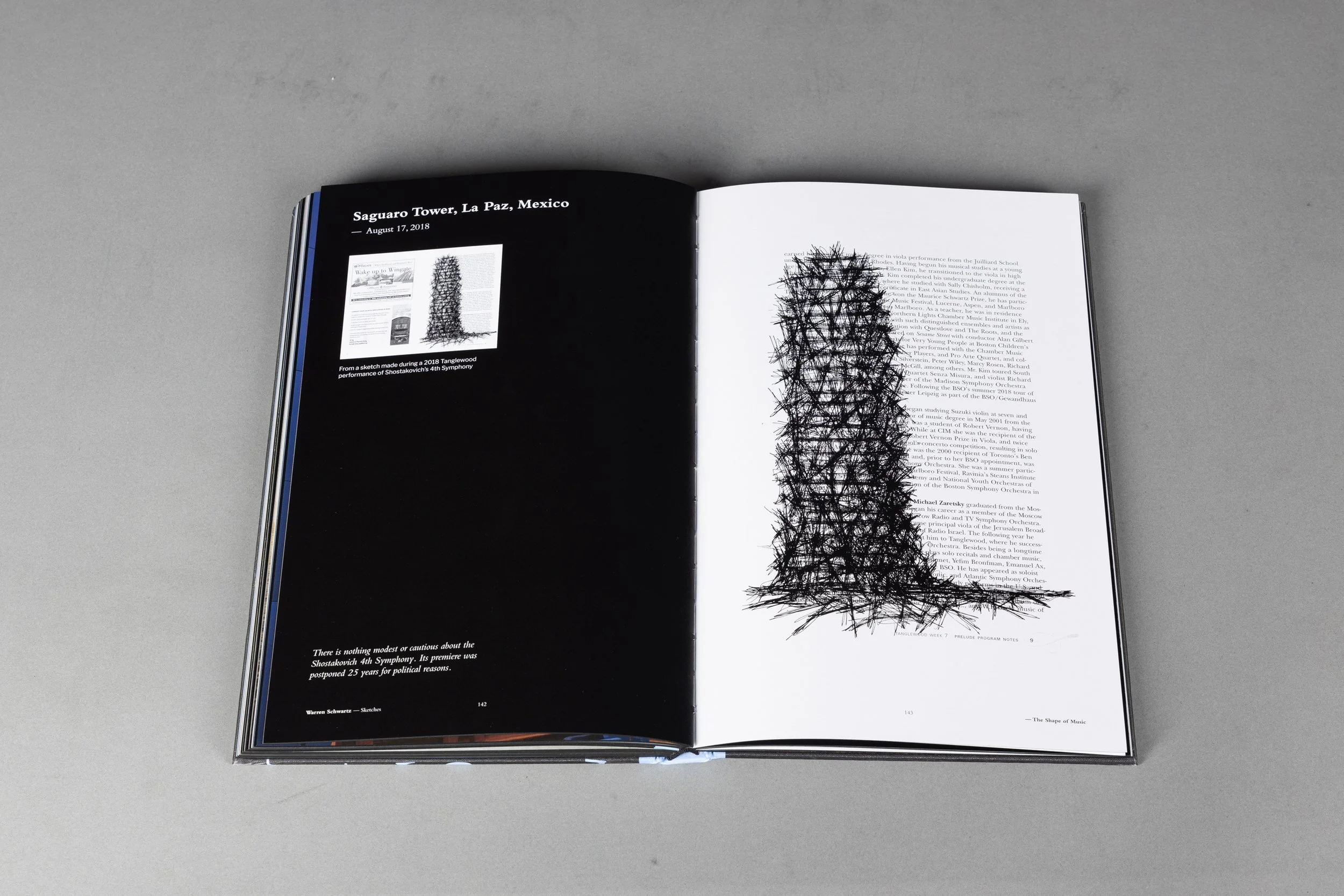 At Boston’s Symphony Hall, Warren Schwartz is less known as a founding principal of Schwartz/Silver Architects than as the husband of BSO violinist Sheila Fiekowsky. Over four decades in the audience, Warren has used music programs as sketchbooks, literally drawing inspiration from the music. “The Shape of Music” combines selections from the programs with his pen-and-ink sketches and personal commentary, and photographs of the built work that sometimes resulted. It shows music’s potential to spark an architectural imagination.