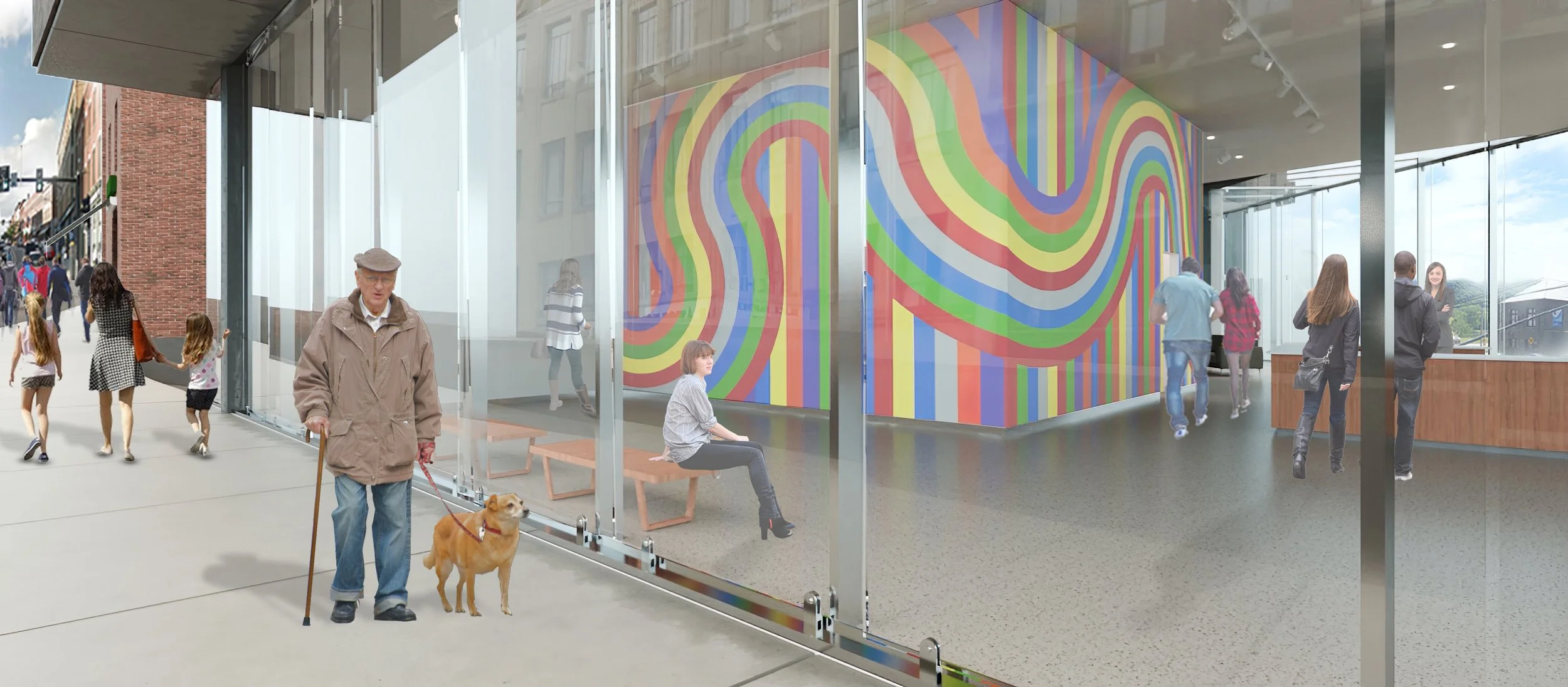 “The architects’ brief was to design a bold, 21st century building that offers a robust ‘Welcome to Brattleboro,’ while at the same time harmonizing with the Town’s historic streetscape. It was also very important to us that the new building be open and inviting, with art visible from the sidewalk and across the street, even when the museum is closed. We know that art museums can be intimidating places, and we want BMAC to be as transparent and welcoming as possible.”