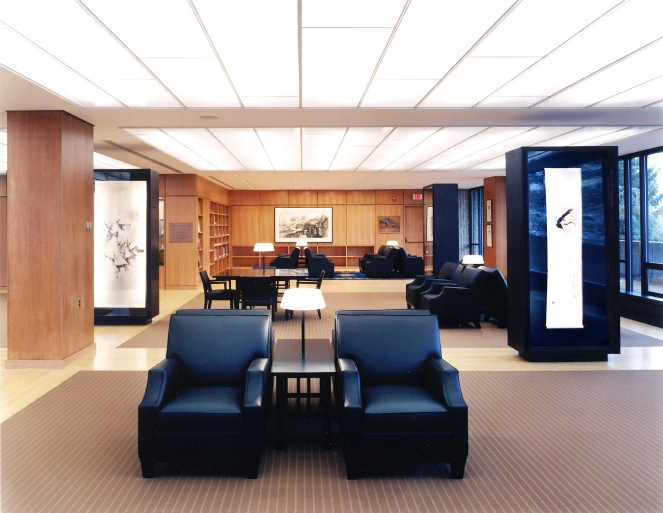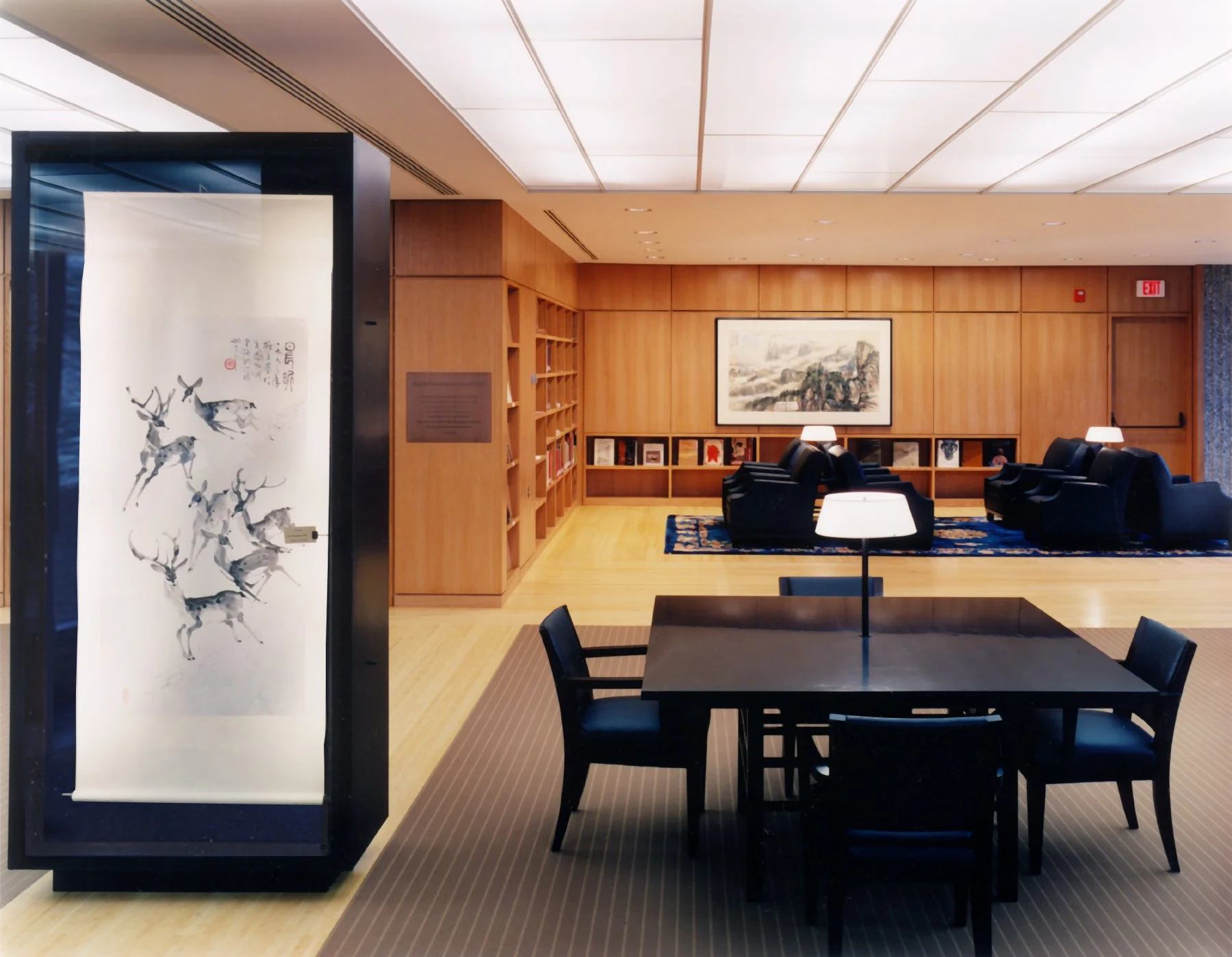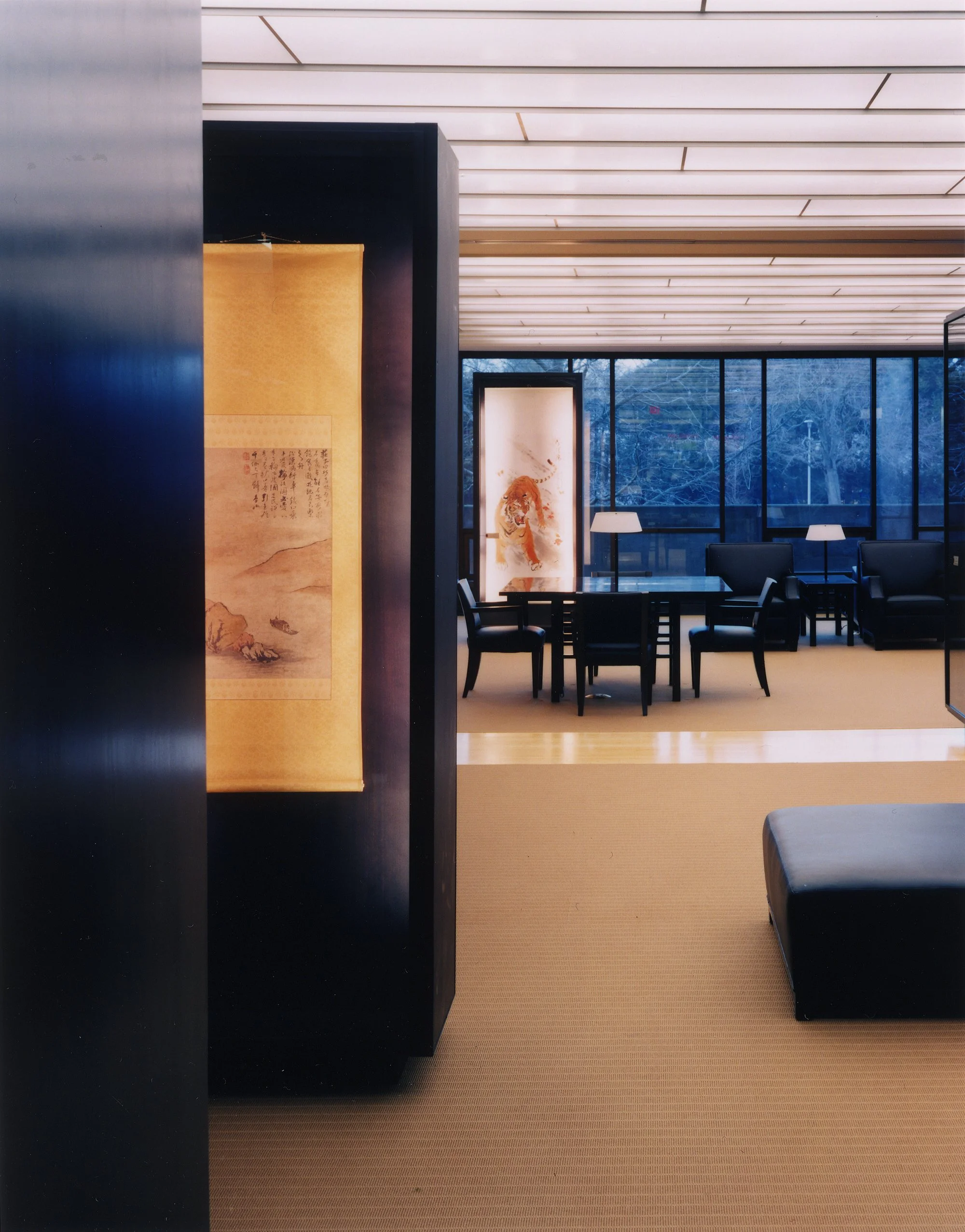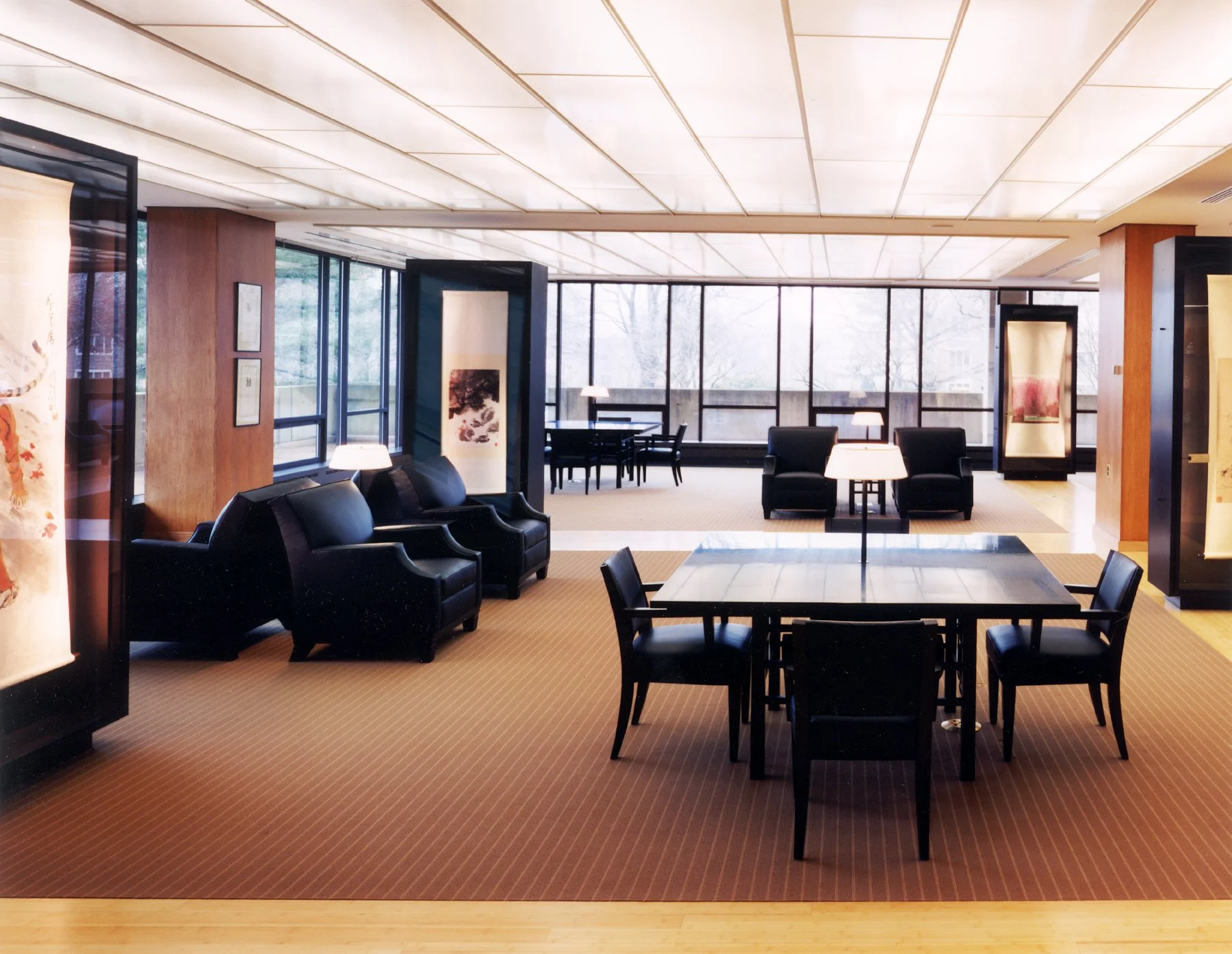“It was the architects’ intent to design a serene and beautiful environment, to maintain the original openness of the space while creating a new coherence and unity, to establish a distinctive character for the room while preserving its relationship to the rest of the library, and to highlight the exhibited art while retaining the wide-angle view of the surrounding trees and grounds ... By emphasizing simplicity, tranquility, and elegance, the Schwartz/Silver concept reflects the traditional Asian design principles so creatively embraced by Charles Chu in his own painting and in his curatorship of the Chu-Griffis Art Collection.”
