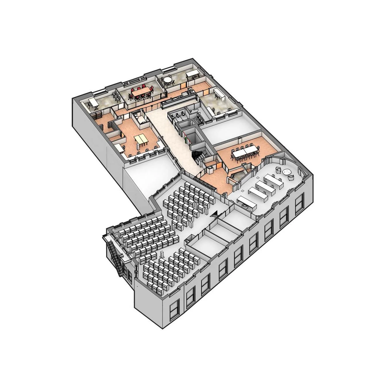 The renovation includes upgrades to the mechanical systems and fire protection, new offices and conference rooms, renovated and expanded archives and digital projects space, updated visitor amenities, dedicated researcher study space, a new entry and visitor reception area, and a new public exhibition and education gallery.