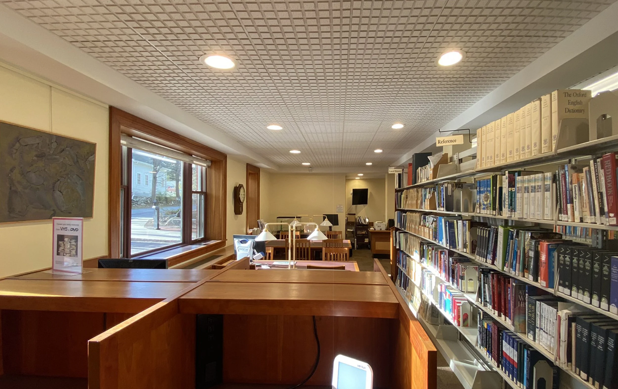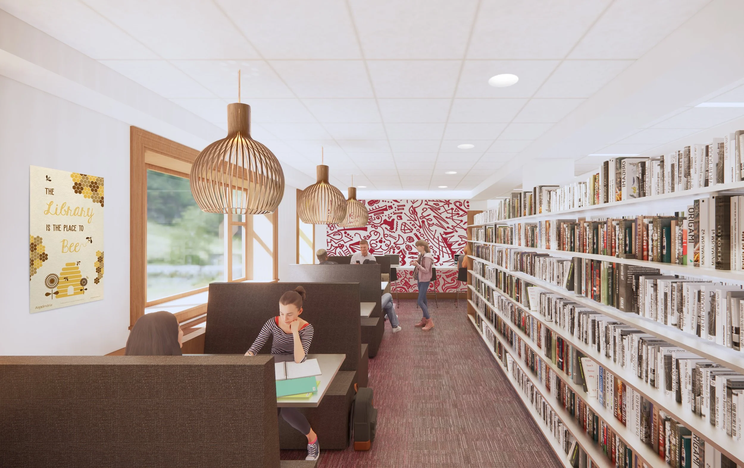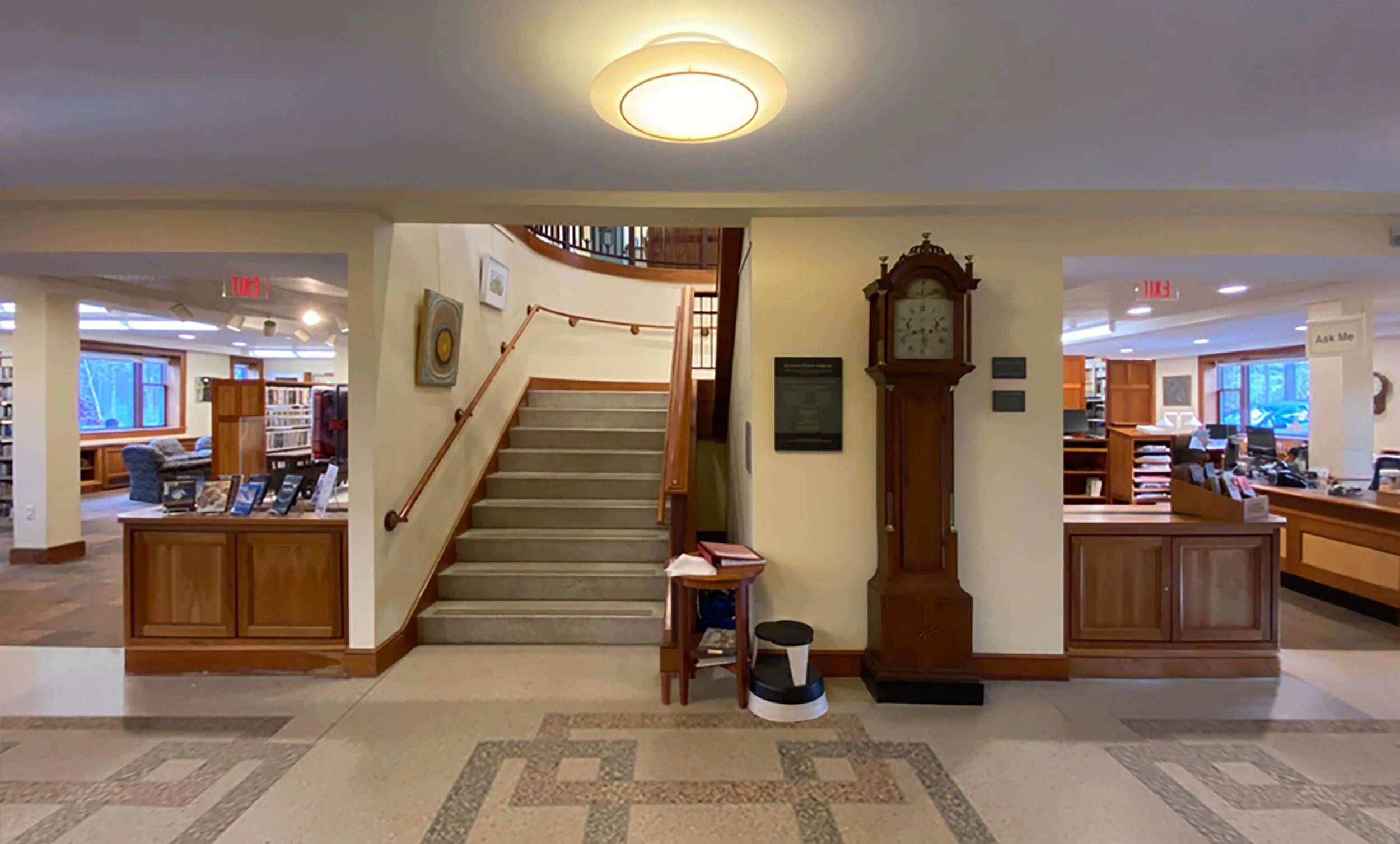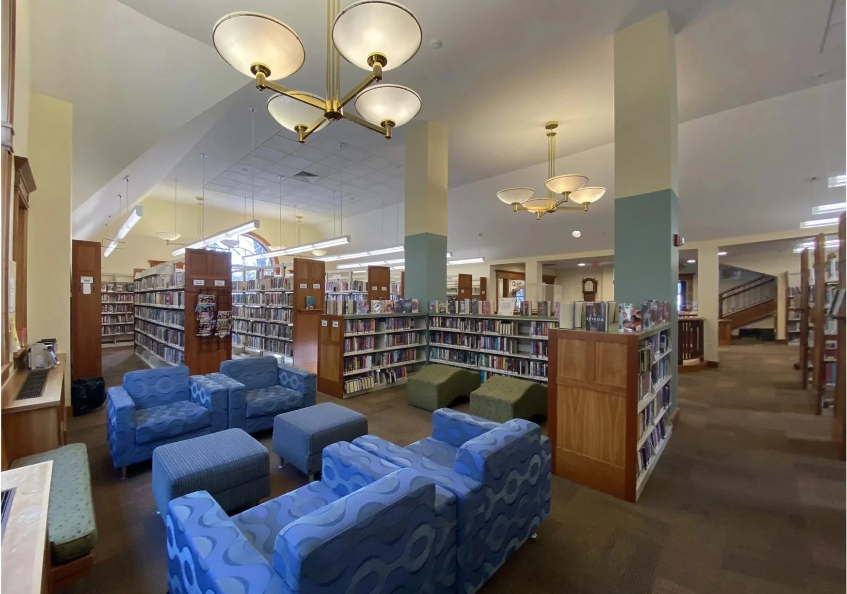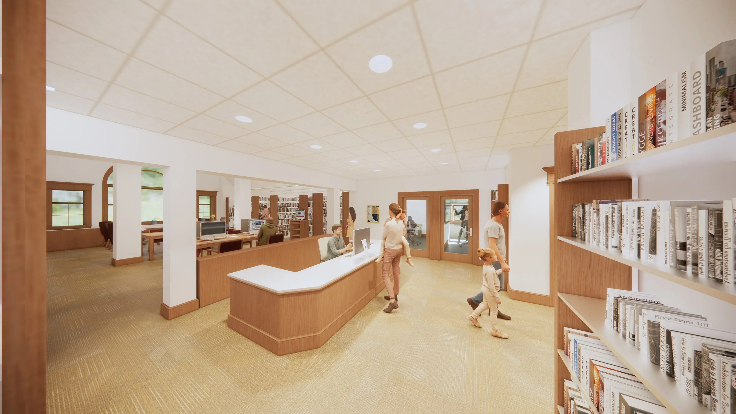 Schwartz/Silver was engaged by the Town of Carlisle to perform a design and feasibility study of an interior renovation of 11,500sf of the existing library building (original from 1896 with an addition & renovation from 2000) which transformed circulation, teen & adult reading spaces, meeting rooms, staff spaces, and life safety. Study included in-house production of renderings. The selected design solution included demolition of an existing central open stair which improved staff presence on the ground floor and improved visibility to all corners of the public collections from the newly centralized circulation desk. A replacement communicating stair was introduced in a different location that improves acoustics between floors.