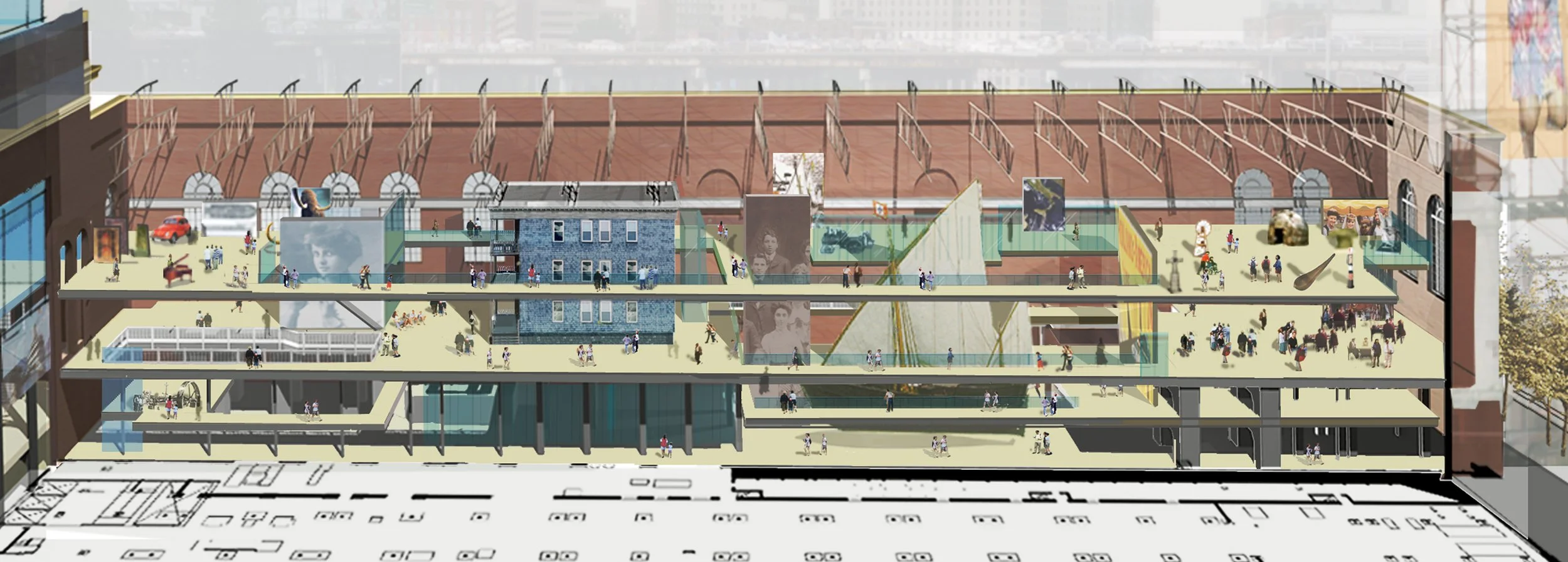 Heritage Harbor will be both Rhode Island’s state history museum and an education and research center. Located in a former power plant, a consortium of nineteen museums, historical societies, and ethnic organizations will join to develop a common home under one roof. New space will be created by an “insertion” – an interior structure that is built independent of the building’s envelope – which allows for a large atrium space to house exhibit spaces. The Caravel, a replica of a 15th century Portuguese sailing ship, will be the centerpiece for the museum.