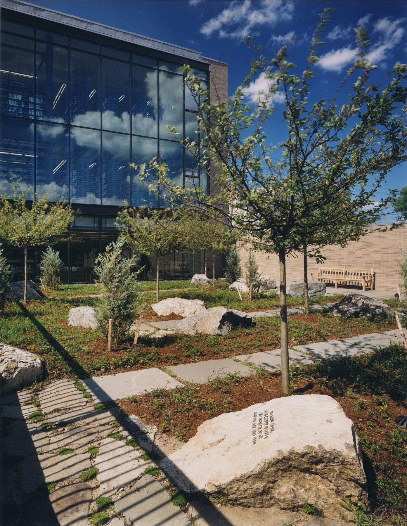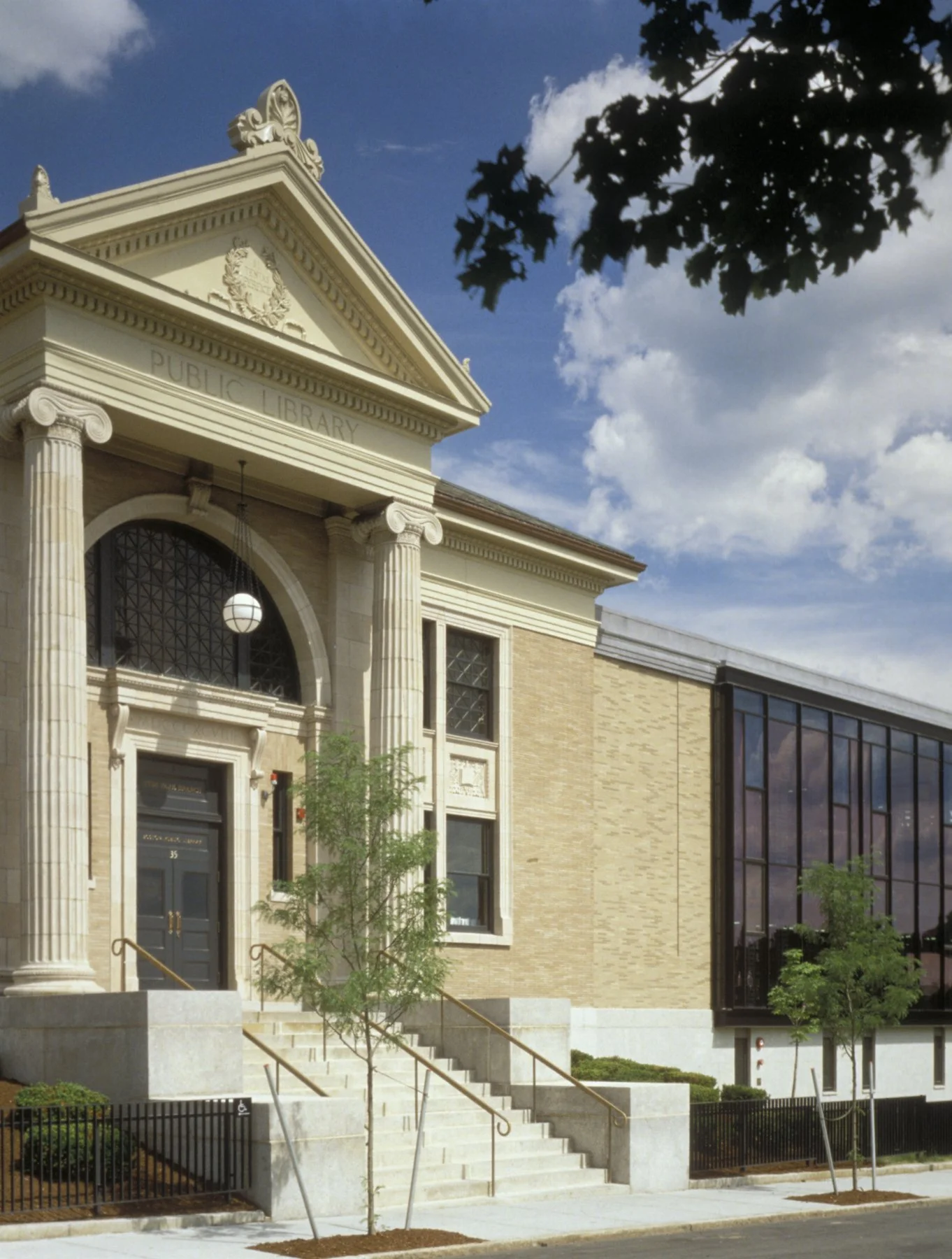 A branch of the Boston Public Library, the Hyde Park Library was built in 1899 in the Classical Revival style. Schwartz/Silver’s renovation and expansion doubled the size of the facility to over 28,000 square feet. To maintain the balance and symmetry of the historic structure, the original brick fabric was extended with flanking masonry ‘bookend’ additions that allow its two story portico to remain the dominant visual element of the expanded building. A glassy new wing houses the new reading room and collections.