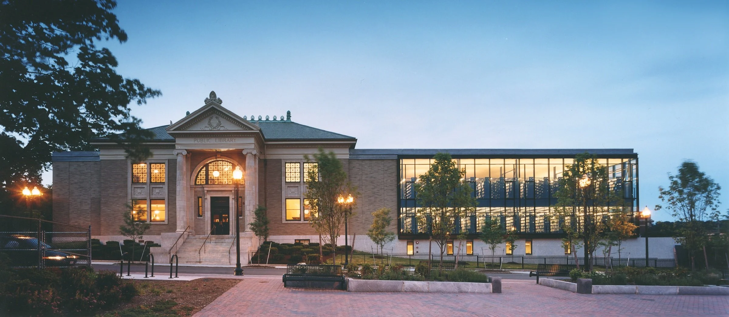 A branch of the Boston Public Library, the Hyde Park Library was built in 1899 in the Classical Revival style. Schwartz/Silver’s renovation and expansion doubled the size of the facility to over 28,000 square feet. To maintain the balance and symmetry of the historic structure, the original brick fabric was extended with flanking masonry ‘bookend’ additions that allow its two story portico to remain the dominant visual element of the expanded building. A glassy new wing houses the new reading room and collections.