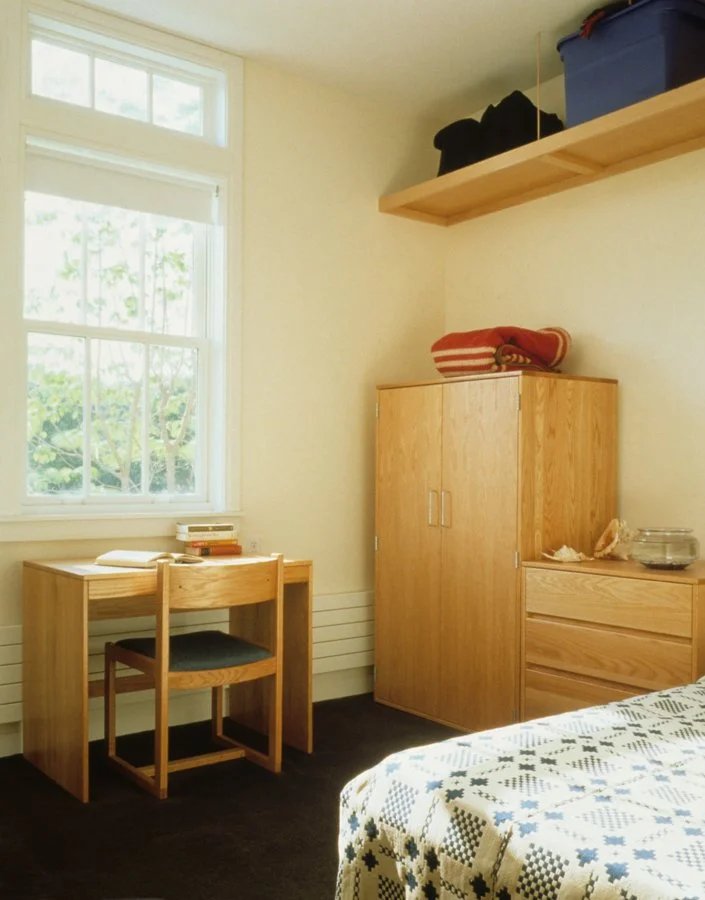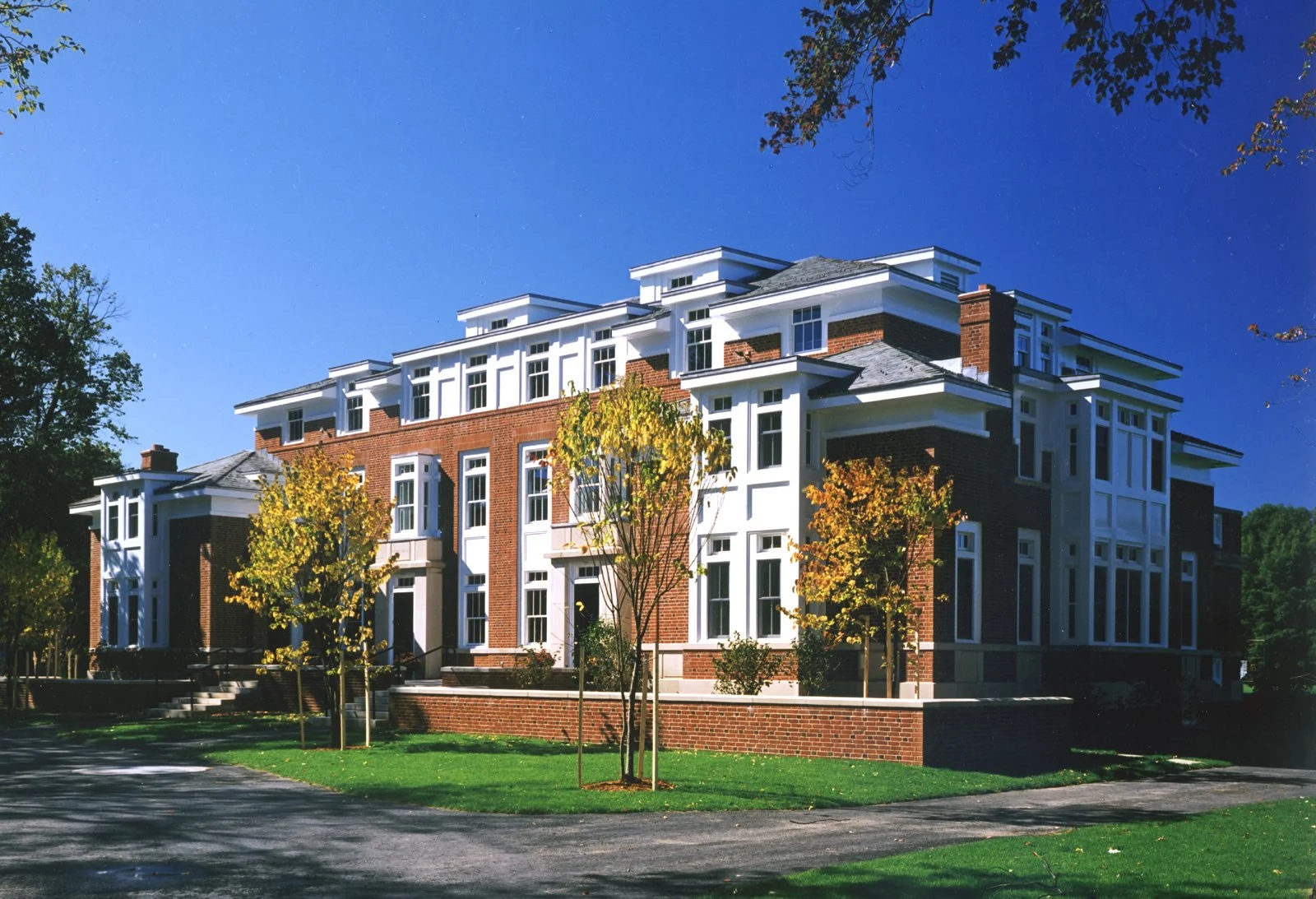 The goal for Kravis House was to house boarding students and faculty families in Middlesex School’s long-established model of residential life. Freshman students are on the first floor. On the two floors above, paired dorm rooms have shared study/lounge areas. Faculty residences flank the central building mass, have their own entrances, and connect to student areas through faculty study spaces. Because Kravis House is marginally visible from the historic central lawn, the massing and materials of the building are in keeping with the original school buildings.