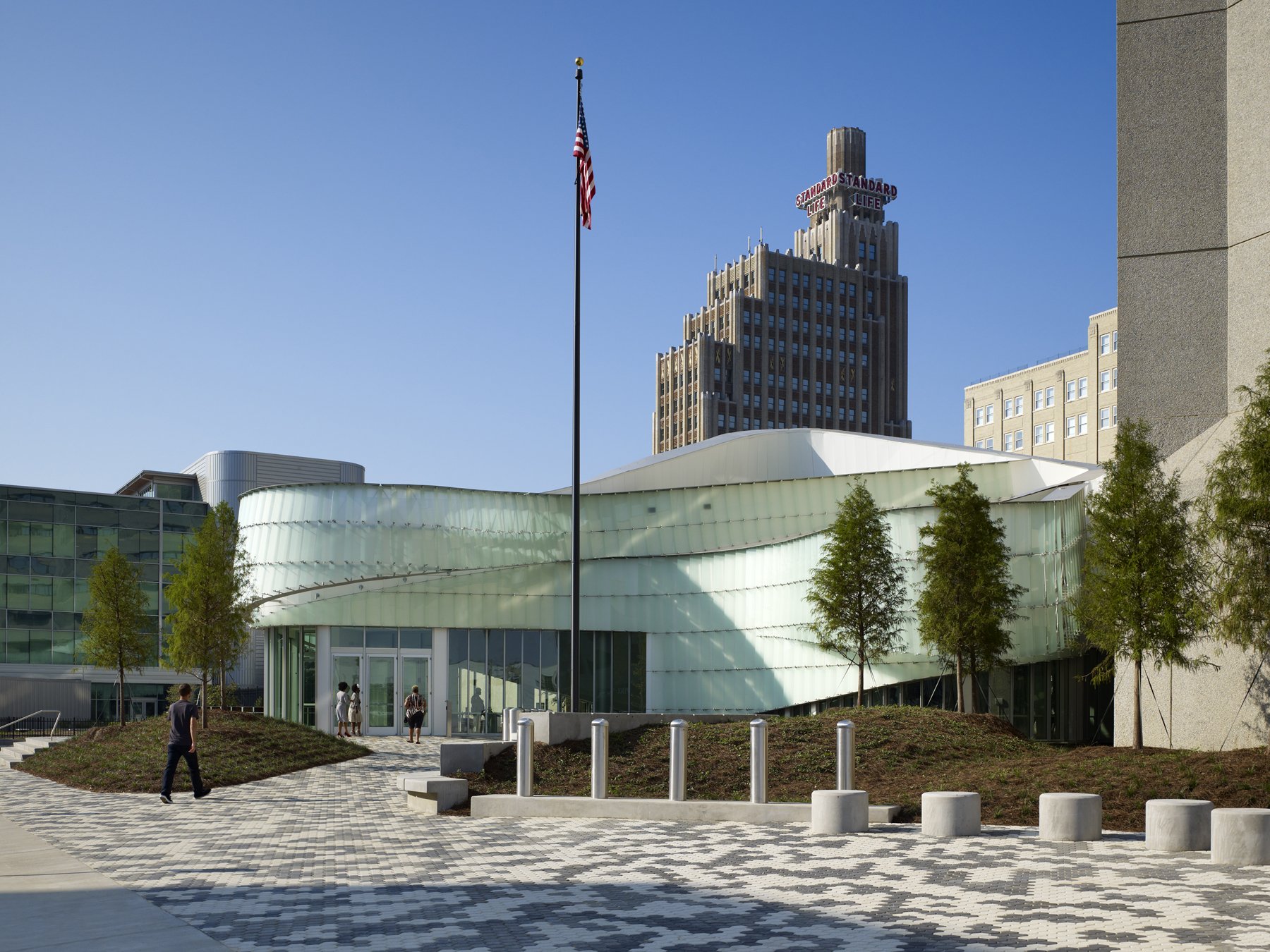 “Through Schwartz/Silver’s modernization of the building and a new security pavilion, the 1979 building is a new symbol for the U.S. government in the city.”