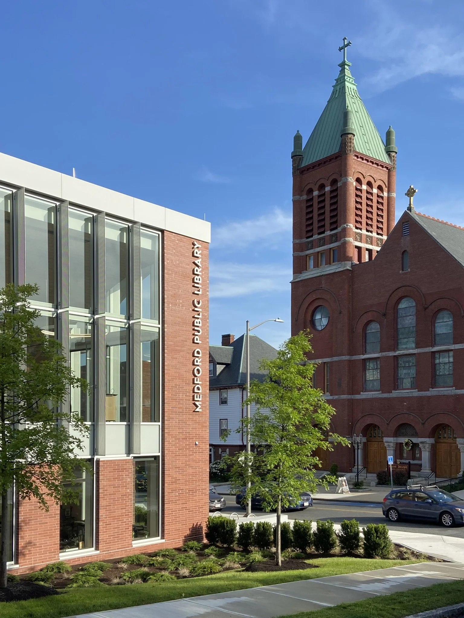 Schwartz/Silver was first engaged by the City of Medford to perform a schematic design study as part of a construction grant application. In 2017, the project was awarded $12.2 million from the Massachusetts Board of Library Commissioners, their largest award that year, to be applied toward a two-story, 45,000 square foot new building on the site of the former library. With help from generous gifts from Bloomberg Philanthropies and the Medford Public Library Foundation, the Charlotte and William Bloomberg Medford Public Library is now complete.