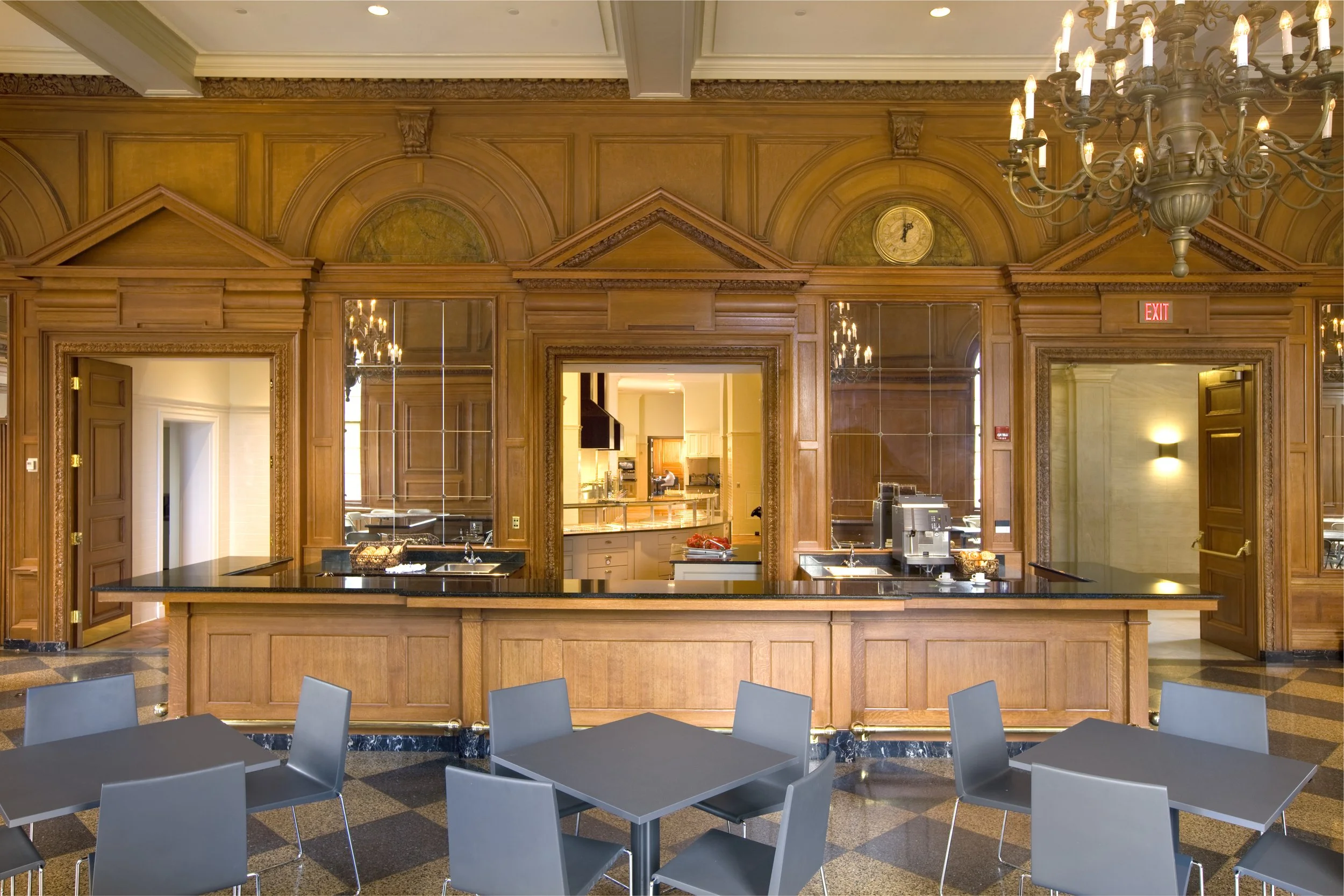 “Preserving and restoring the historic character of the building was central to every aspect of the renovation. Even the most radical interventions – like opening the lobby to the servery beyond – were done so artfully as to seem no change at all.”