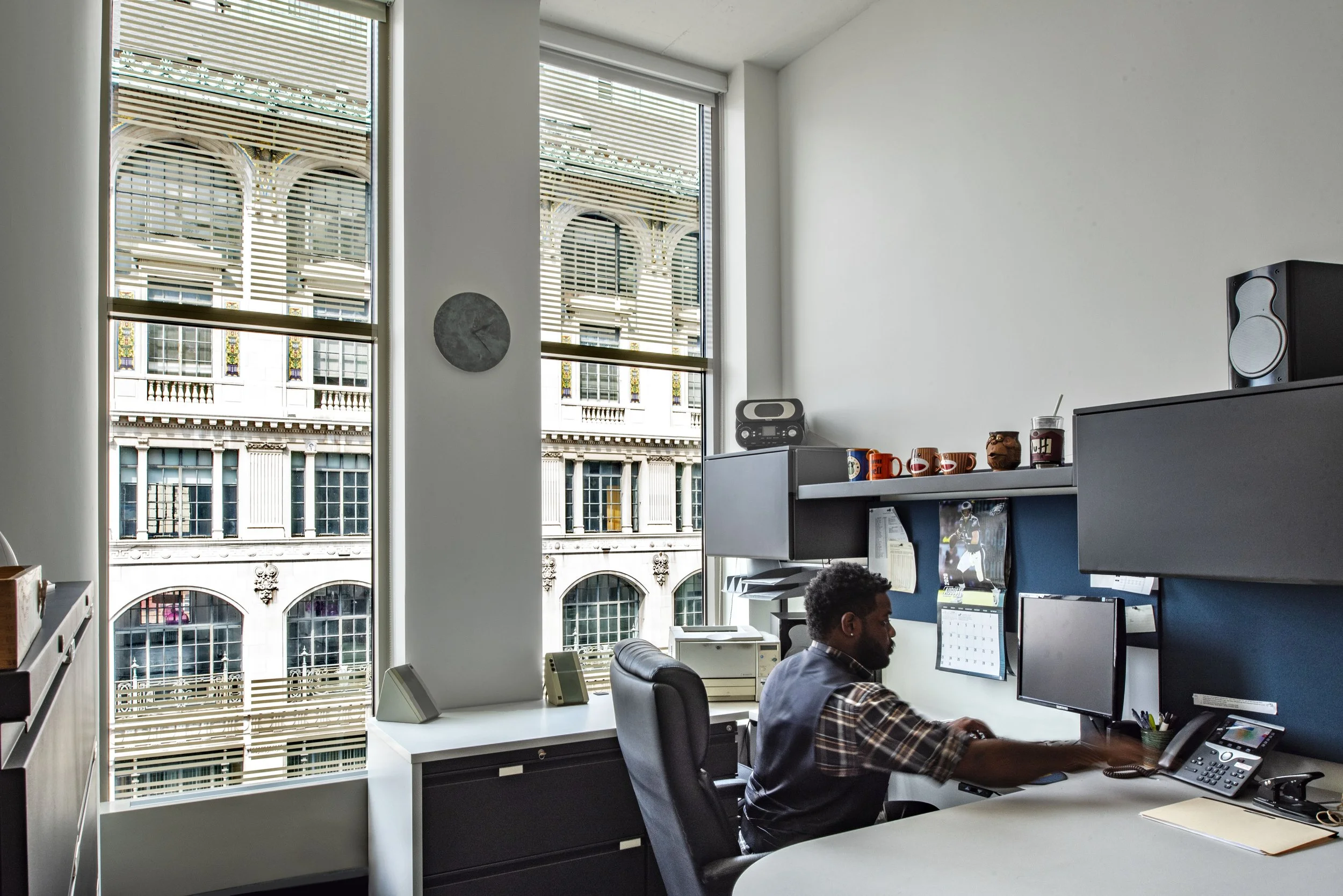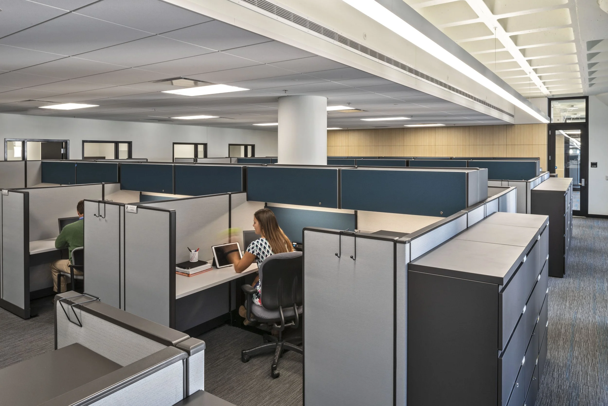 The GSA charged Schwartz/Silver with creating a new building standard for tenant space and a better workplace environment through a focus on efficient spaces while pushing back on agency standards and union requirements. With each agency—the Internal Revenue Service, the Department of Energy, the Social Security Administration, and the Department of Justice’s U.S. Trustee Program—the design process included Town Hall meetings, user interviews, benchmarking analysis, and workshops to show examples of best practices in office planning.