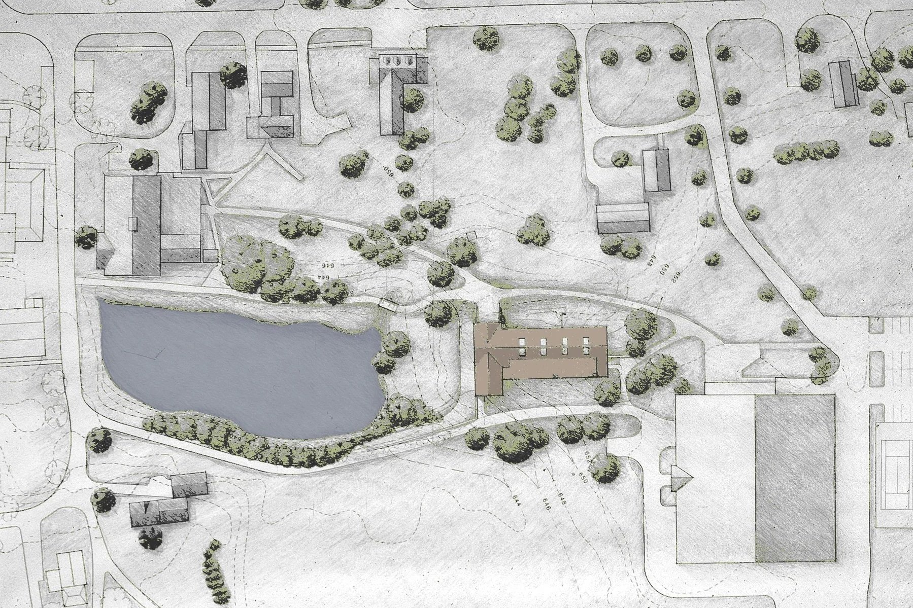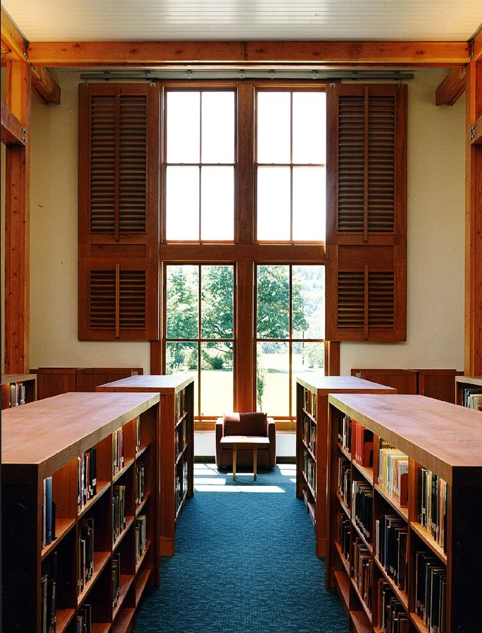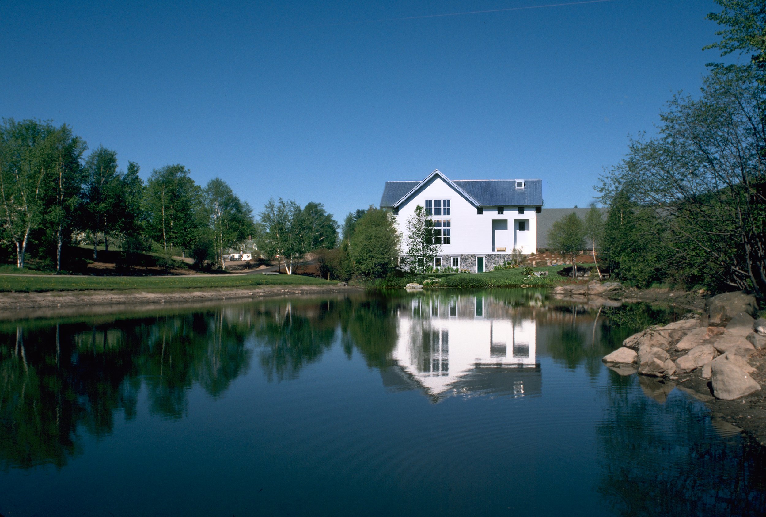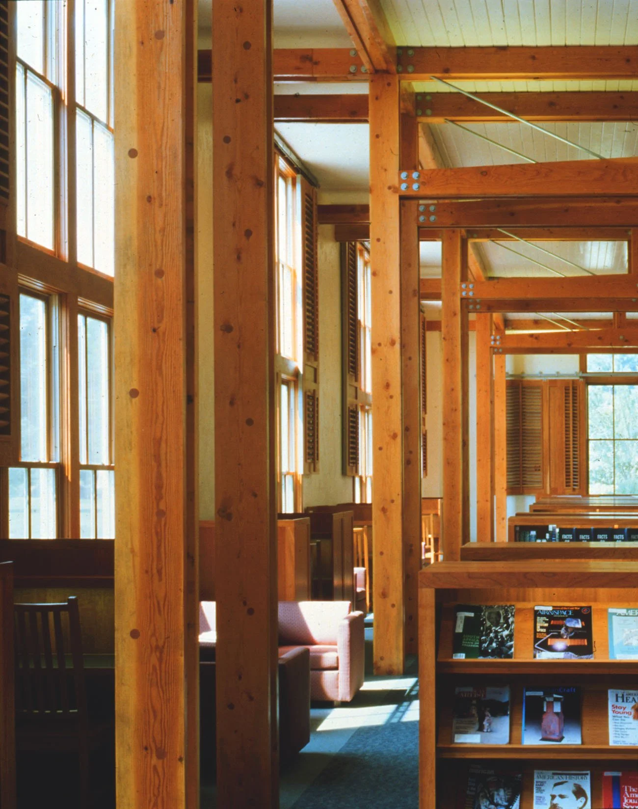Proctor Academy is situated in a New England village with informally arranged white clapboard buildings. The exterior of the new learning center is modern in style, yet its massing, clapboard exterior, timber frame structure and window details are appropriate to its rural context. The interior space of the library is modeled after a New England meeting house, as a high-ceilinged single volume. The program includes 30,000 square feet of library space, a computer center, classrooms, and tutorial rooms.