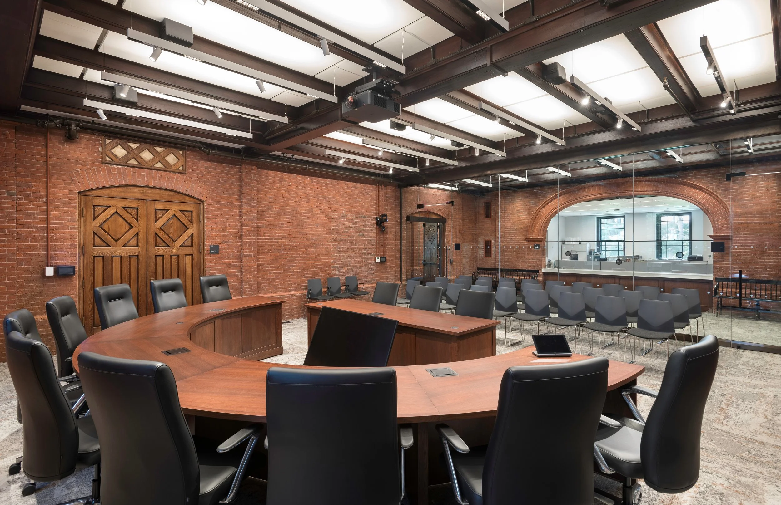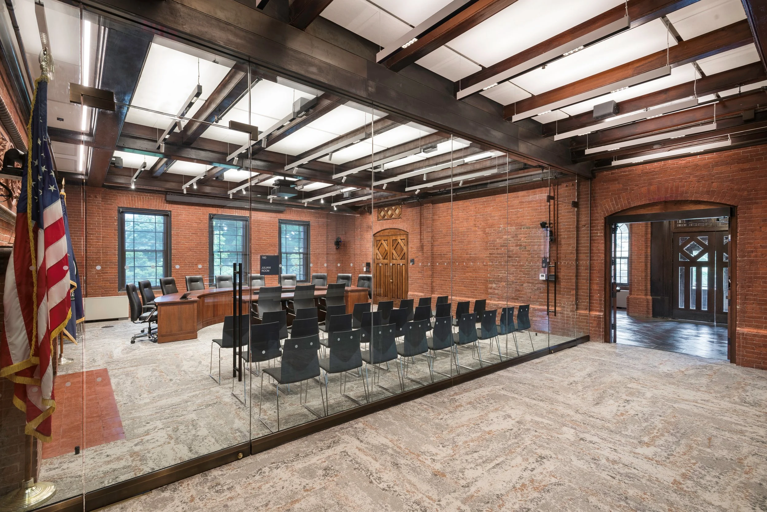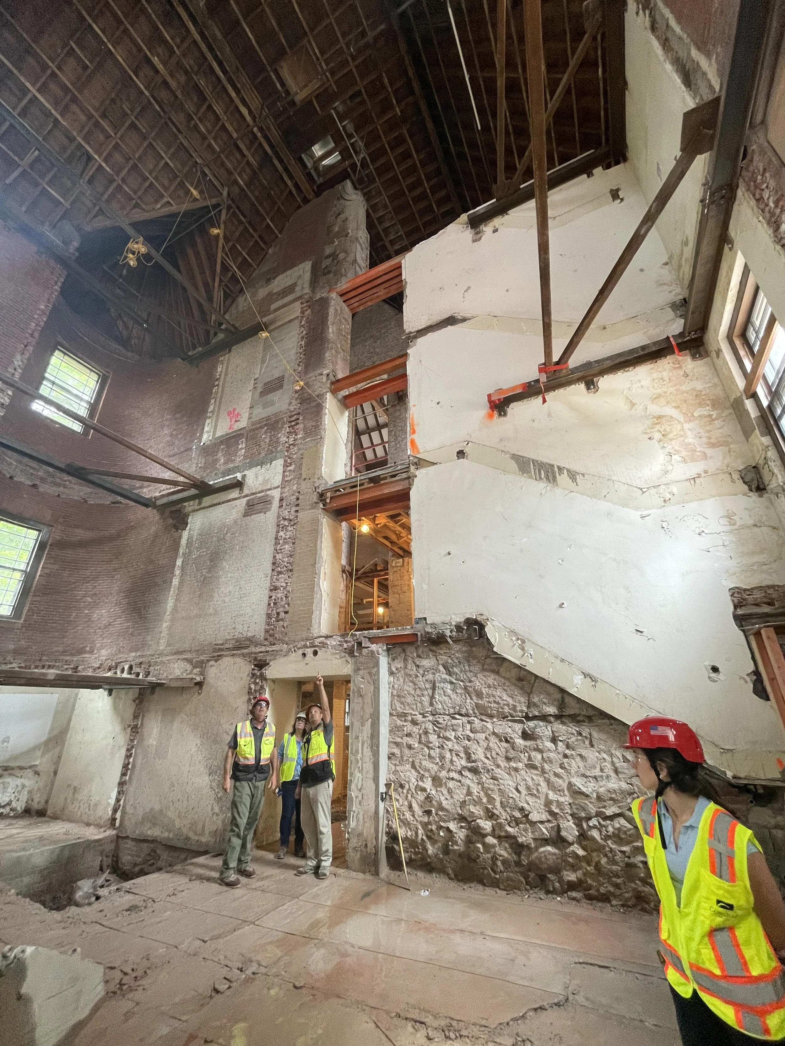 The renovation involved a complete overhaul of the building’s core to establish seamless vertical and horizontal circulation. This required a new elevator, demolition and relocation of some floors, and a full gut of interior spaces. While respecting its historical layout, the project successfully harmonized the flow between the east and west wings, ensuring that for the first time in 140 years, the structure operates cohesively as a single entity. Key upgrades to the building’s mechanical, electrical, plumbing, and fire protection (MEP/FP) systems were integral to the project. These improvements not only brought the building up to modern standards but also significantly increased its energy efficiency and sustainability. A new accessible entry ramp revitalized the building’s original entrance, which had been abandoned during earlier renovations.