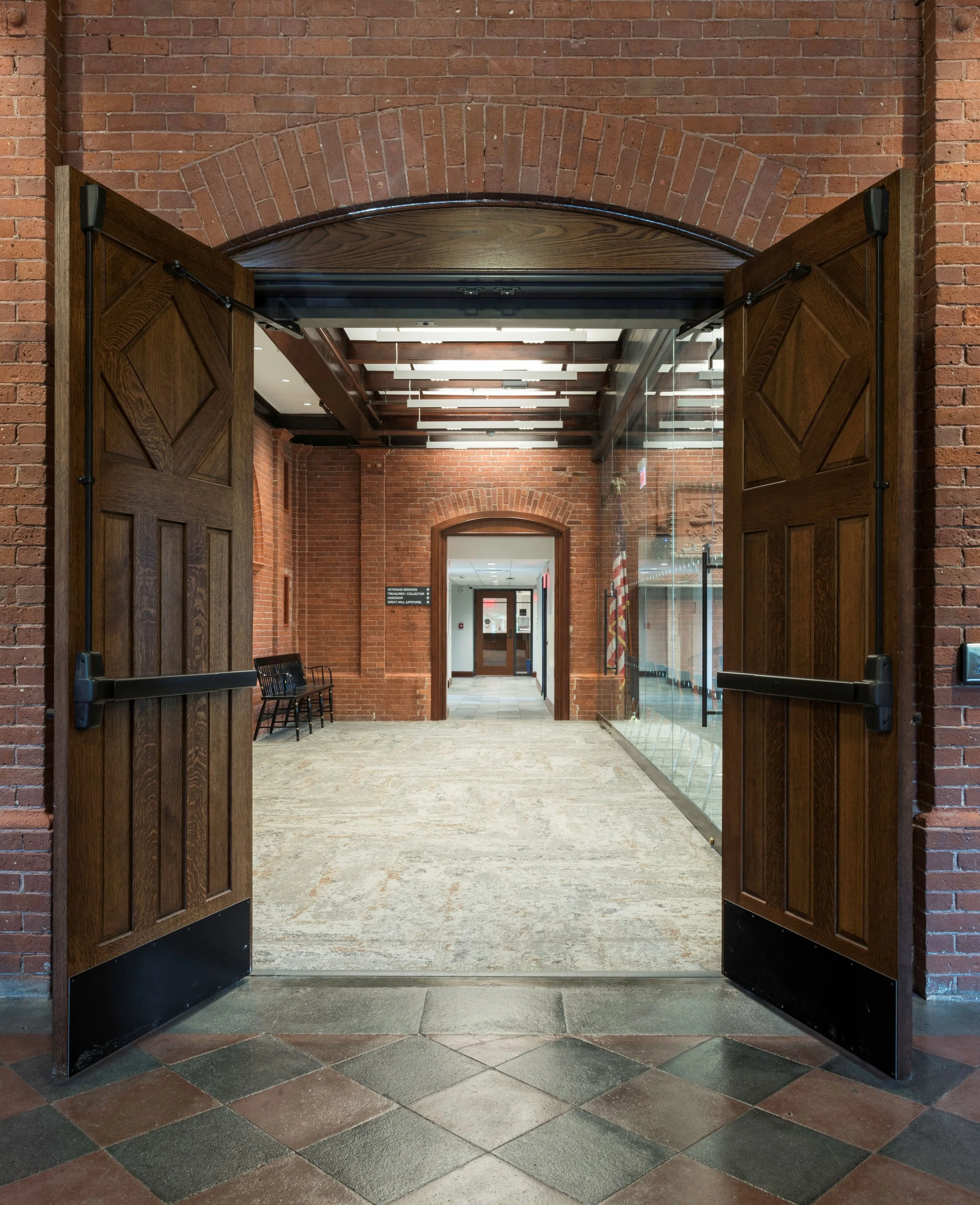 Schwartz/Silver Architects led a comprehensive renovation of the historic Wellesley Town Hall, originally constructed in the 1880s. The project restored and modernized the four-story structure, including the attic space, while preserving its historical character. The original east wing was expanded with a west wing addition just two years after its initial construction, creating unique challenges due to mismatched floor heights between the two wings. These differences, which existed on all levels except the first floor, necessitated a thoughtful and strategic redesign to enhance the building’s functionality and accessibility.